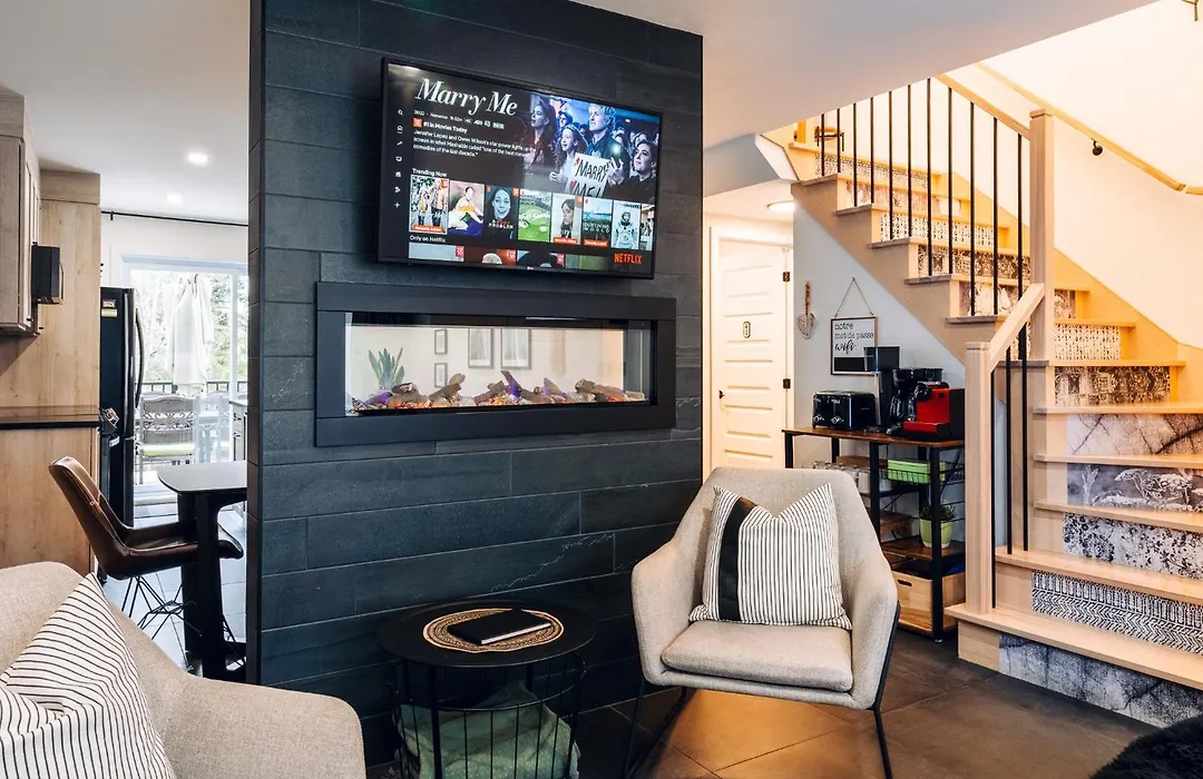 Το Condo Familale Spa Et Table Babyfoot, 350M De La Montagne De Ski προσφέρει χώρο καθιστικού και κουζίνα, καθώς και ανέσεις, όπως ρυθμιζόμενο κλιματισμό. Επιπλέον, υπάρχουν στεγνωτήρας μαλλιών, σεσουάρ και πετσέτες. Αυτό το διαμέρισμα διαθέτει τζακούζι, ξεχωριστή τουαλέτα και ντους για την άνεση σας.